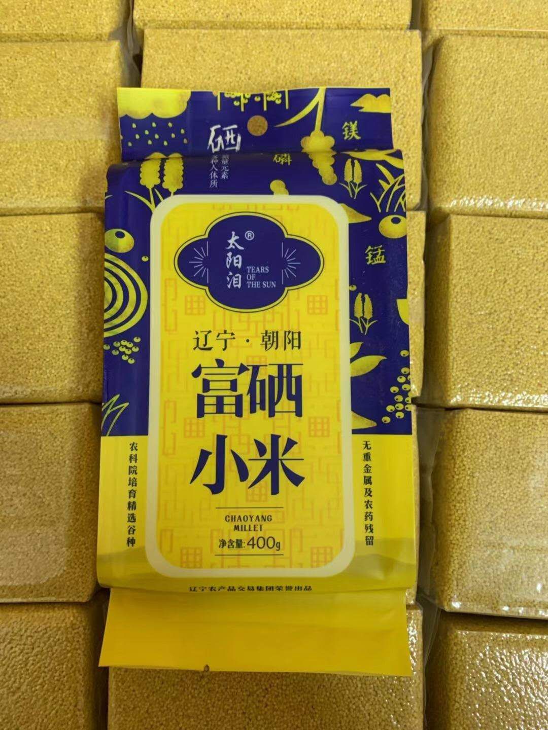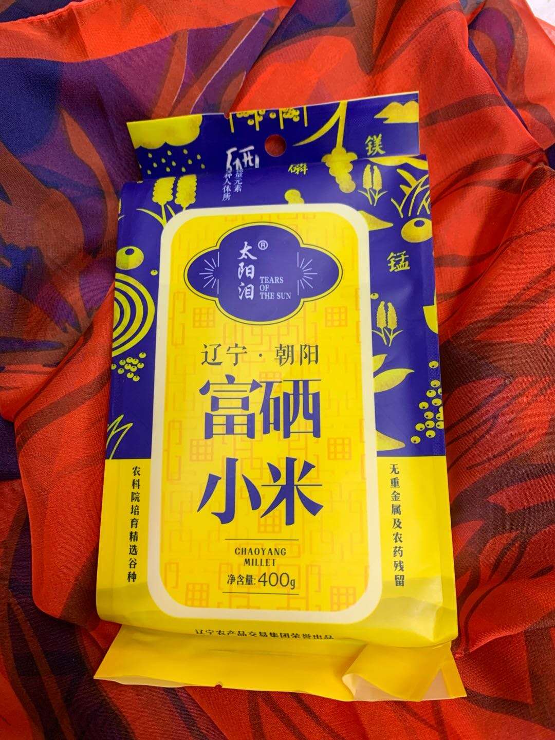 朝阳有着悠久的文化历史,是一只小鸟飞起的地方,是一朵花绽放的地方,是一捧小米飘香的地方,朝阳小米生长在北纬41度的黄金粮食带上,是大自然赐给朝阳珍贵的礼物,“太阳泪生态富硒小米”具有颗粒均匀、香甜可口、营养丰富、食用方便、用途较广、零农残等特点。食用可做成美味可口的稠粥、小米发糕、煎饼干、小米锅巴、小米面饼等二十余种不同风味的食品。