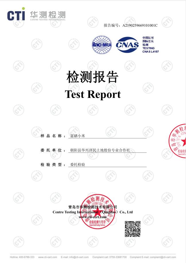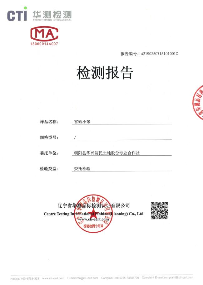 富硒小米零农残检测报告