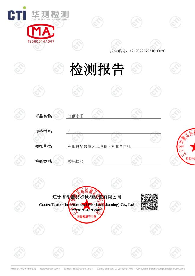 富硒小米硒含量检测报告