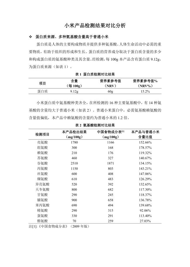 富硒小米营养成分和微量元素检测报告